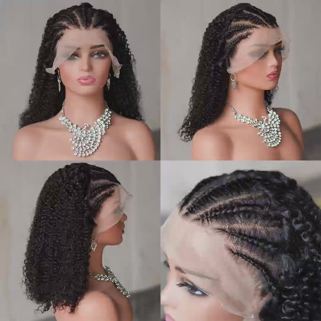 Cette magnifique perruque Lace Front combine le look tendance des tresses cornrows sur le devant avec une luxuriante chevelure naturelle Indian human hair bouclée. Elle est conçue pour offrir un style naturel et polyvalent, parfait pour celles qui recherchent à la fois l'élégance des tresses et le volume des boucles.